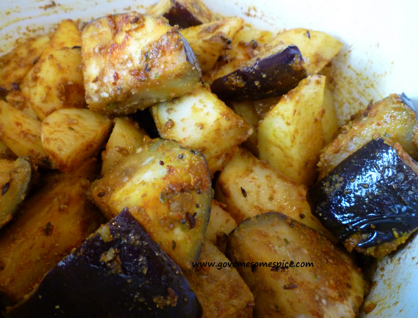 Ringna bateta nu shaak is the epitome of authentic Indian vegetarian cookery of the Gujarati style. That means many of you probably know this recipe but I wanted to share my take on it anyway, particularly to help the young and new budding chefs (like my son).